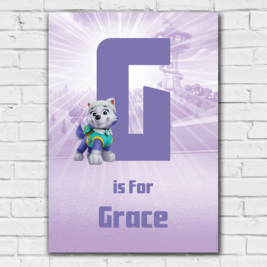Paw Patrol Print - Everest Letter and Name Personalised Poster Wall Art