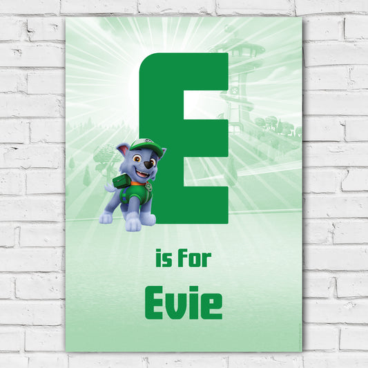 Paw Patrol Print - Rocky Letter and Name Personalised Poster Wall Art