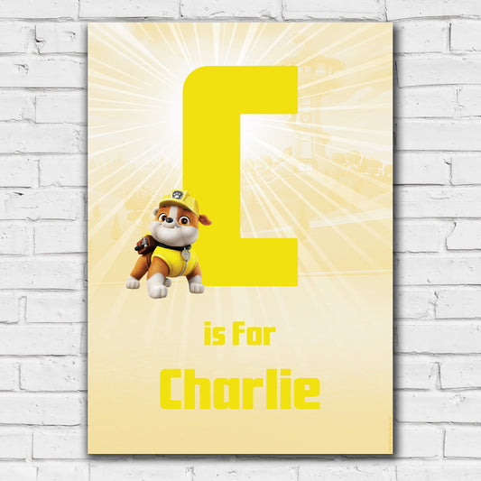 Paw Patrol Print - Rubble Letter and Name Personalised Poster Wall Art