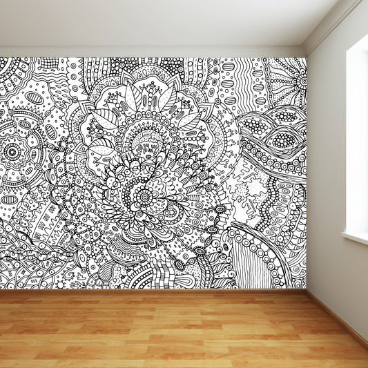 Mandala Wall Mural - Black and White Mandala Pattern Doodle Full Wall Mural