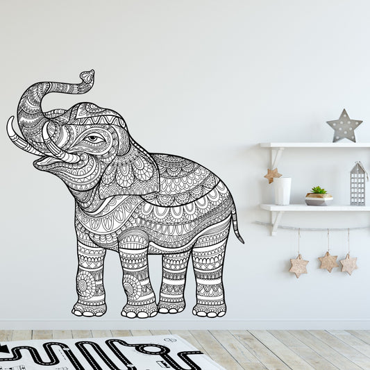 Mandala Wall Sticker - Black and White Mandala Pattern Elephant