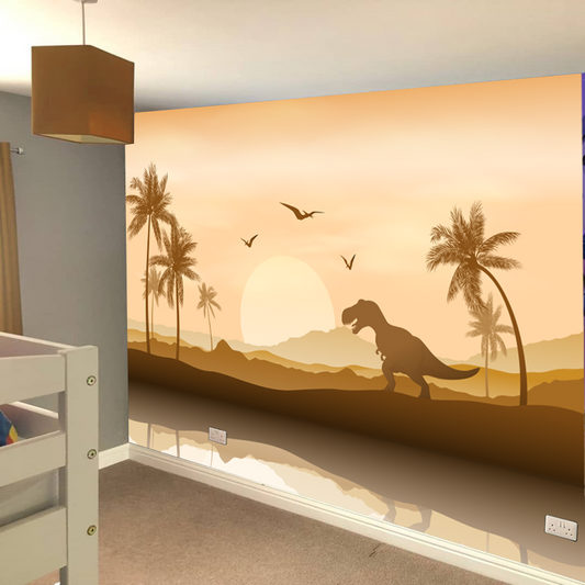 Dinosaur Wall Mural - Beige Silhouette Dinosaur Land Full Wall Mural