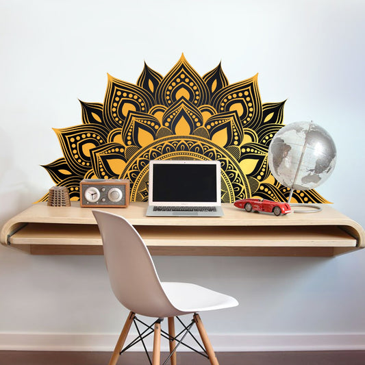 Mandala Wall Sticker - Black and Gold Half Flower Mandala
