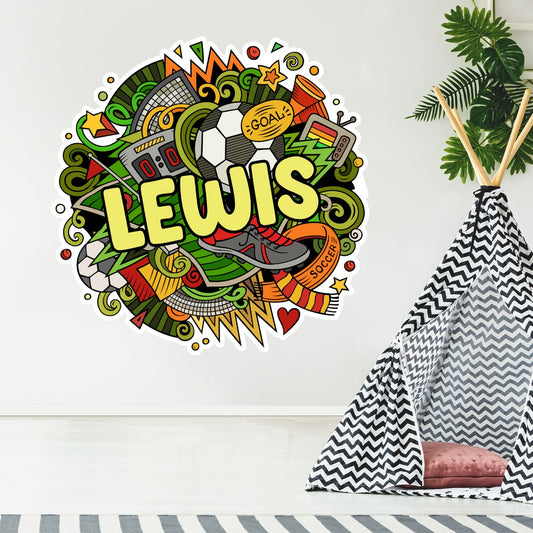 Football Wall Sticker - Football Doodle Circle Personalised Name