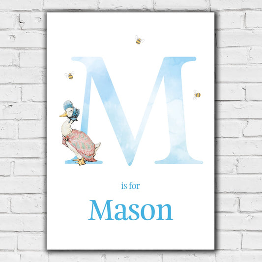 Peter Rabbit Print - Jemima Puddle-Duck Blue Letter & Personalised Name