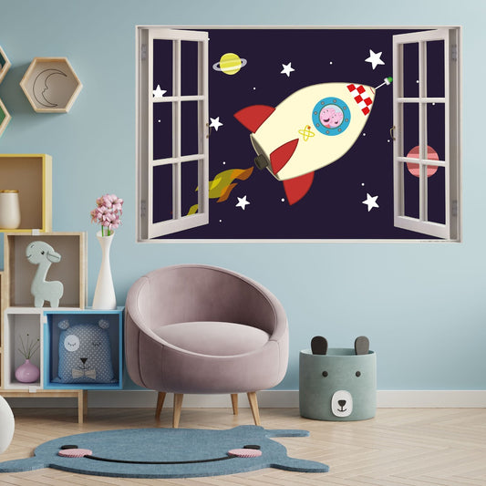 Peppa Pig Wall Sticker - Peppa and George Space Rocket Window Wall
