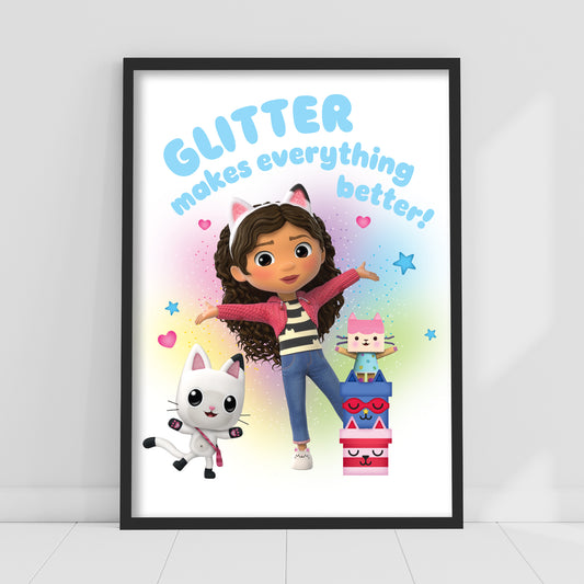 Gabby's Dollhouse Print - Glitter Makes Everything Better Poster Kids Wall Art