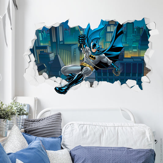 Batman™ Wall Sticker - Batman Swinging Through Broken Wall Decal DC Superhero Art