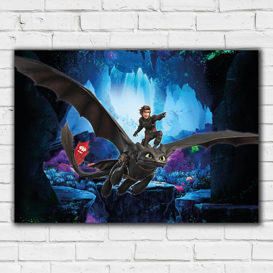 How To Train Your Dragon Print - Hiccup and Toothless Flying Through Cave Print