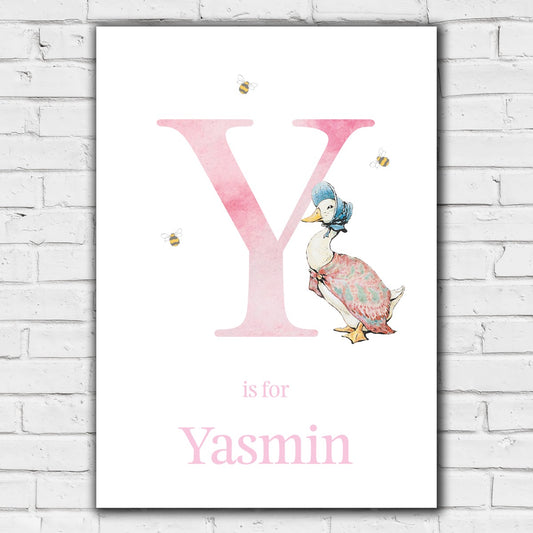 Peter Rabbit Print - Jemima Puddle-Duck Pink Letter & Personalised Name