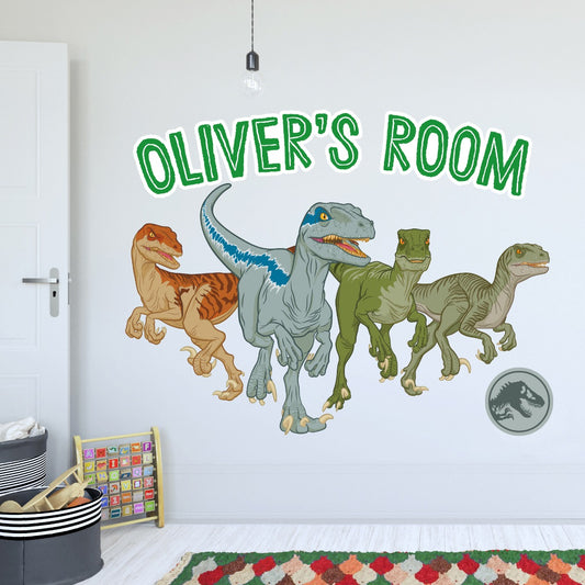 Jurassic World Camp Cretaceous Wall Sticker - Raptor Group Personalised Name