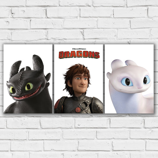 How To Train Your Dragon Set of 3 Prints - Hiccup, Toothless and Light Fury