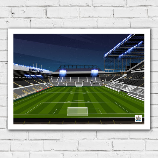 Newcastle United FC Print - Night Time Stadium Illustration Poster Football Wall Art