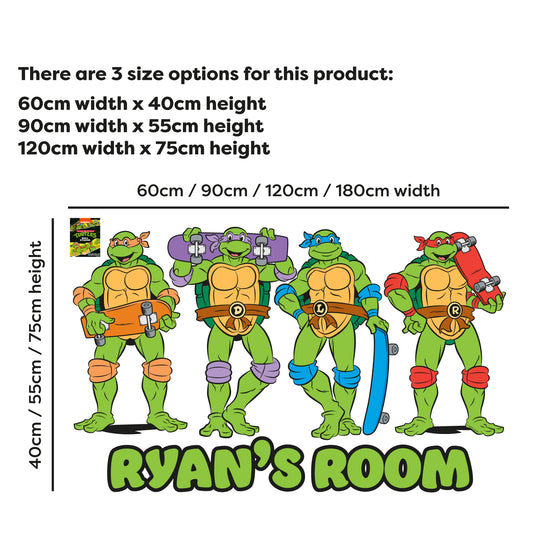 Teenage Mutant Ninja Turtles Wall Sticker - Group Skateboards Personalised Decal TMNT Art
