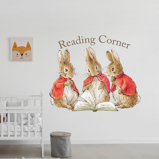 Peter Rabbit Wall Sticker - Peter Rabbit Flopsy Mopsy and Cottontail Reading Personalised Decal Wall Art