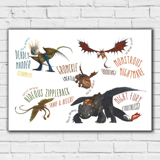 How To Train Your Dragon Print - Dragons and Info Poster Wall Art