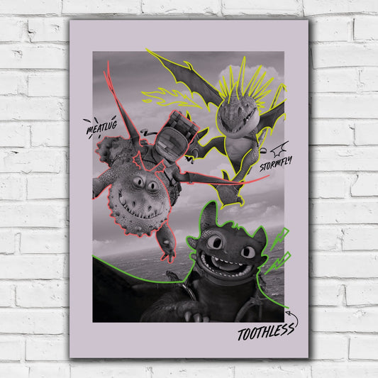 How To Train Your Dragon Print - Toothless, Meatlug and Stormfly Print