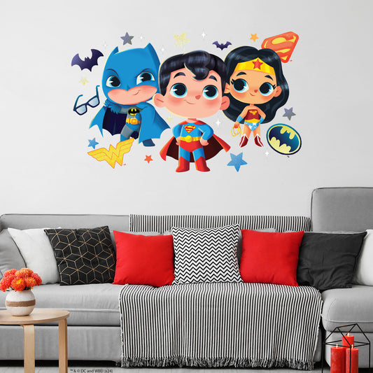 Justice League Wall Sticker - Baby Superman Batman and Wonder Woman and Stars Wall Decal DC Superhero Art