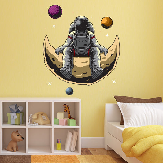 Space Wall Sticker - Astronaut Sat on Moon Cartoon