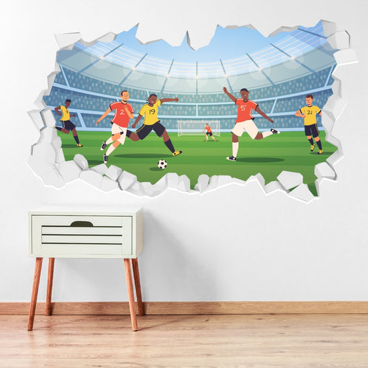 Football Wall Sticker - Cartoon Football Shooting Through Broken Wall