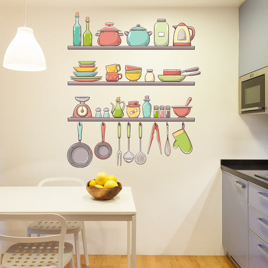 Kitchen Wall Sticker - Pastel Colour Shelves