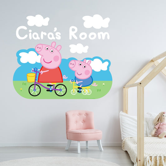 Peppa Pig Wall Sticker - Peppa and George Clouds Personalised Name
