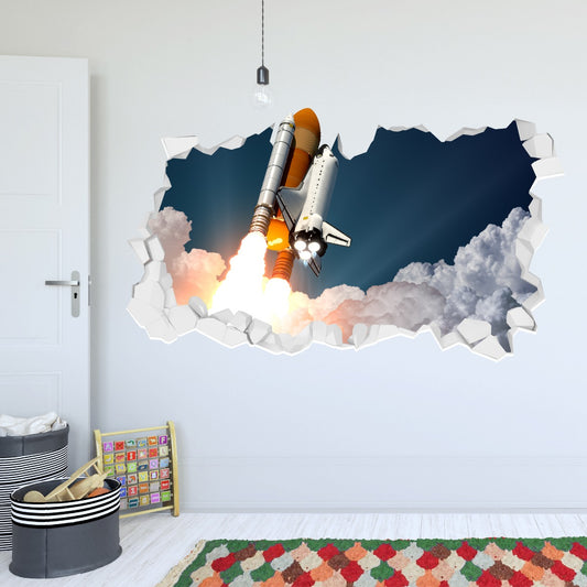 Space Wall Sticker - Rocket Ship Blasting Through Broken Wall