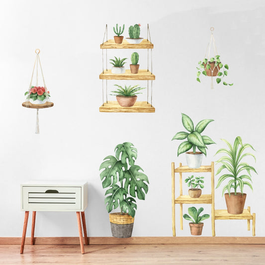 Plant Wall Sticker - Set of Watercolour Plants on Shelves and Hanging Wall Decals Nature Wall Art
