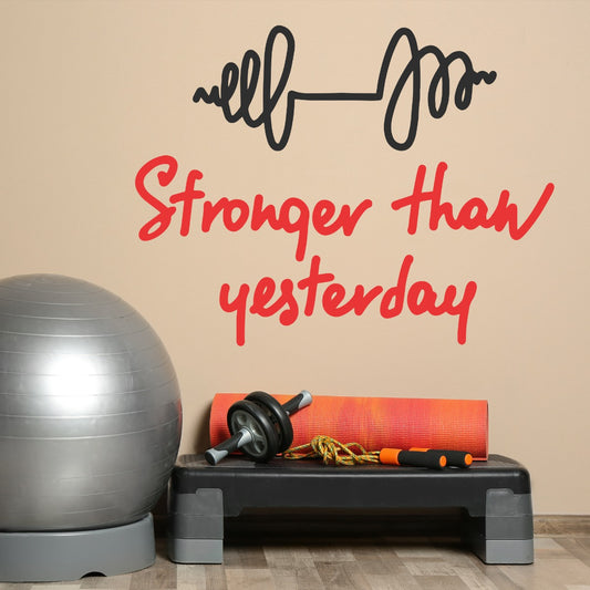 Gym Wall Sticker - Stronger Than Yesterday Handwritten Quote
