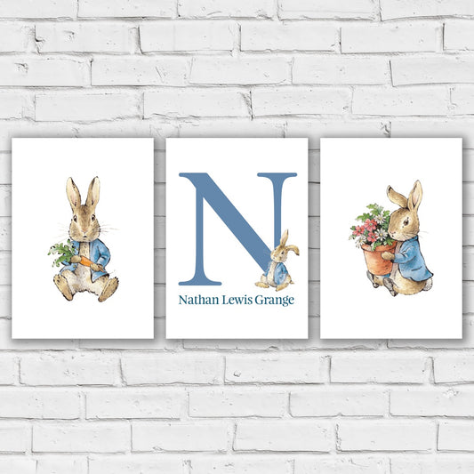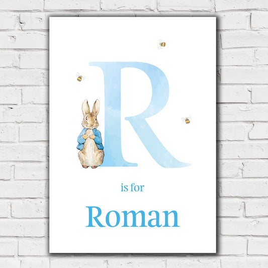 Peter Rabbit Print - Blue Letter and Personalised Name