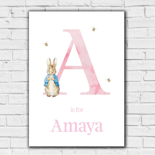 Peter Rabbit Print - Pink Personalised Letter & Name Print