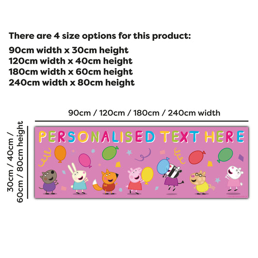 Peppa Pig Birthday - Party Balloons Pink Personalised Banner Wall Sticker