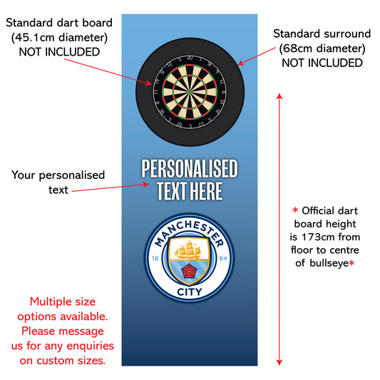 Manchester City FC Wall Sticker - Dart Board Backdrop with Personalised Text Wall Art