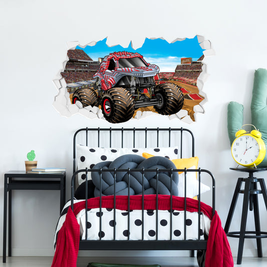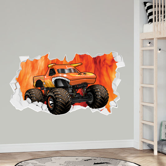 Monster Jam Wall Sticker - Dragon Driving Through Broken Wall Decal Art