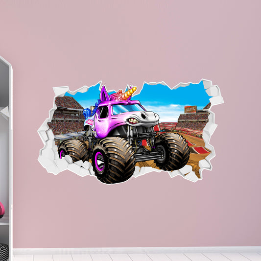 Monster Jam Wall Sticker - ThunderROARus Driving Through Broken Wall Decal Art