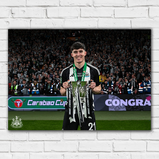 Newcastle United Cup Winners Print - Livramento with Trophy Poster