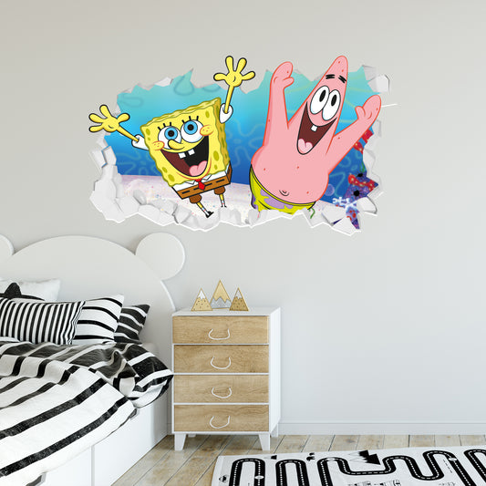 SpongeBob Wall Sticker - SpongeBob and Patrick Jumping Through Broken Wall Art