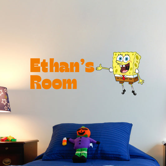 SpongeBob Wall Sticker - SpongeBob Pointing at Personalised Name Decal Wall Art