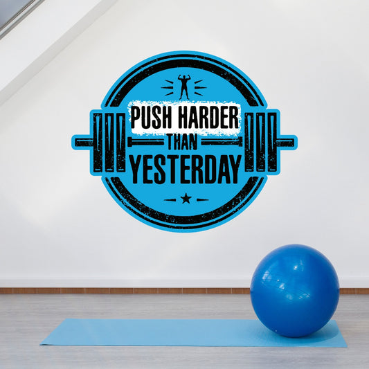 Gym Wall Sticker - Push Harder Than Yesterday Barbell Circle