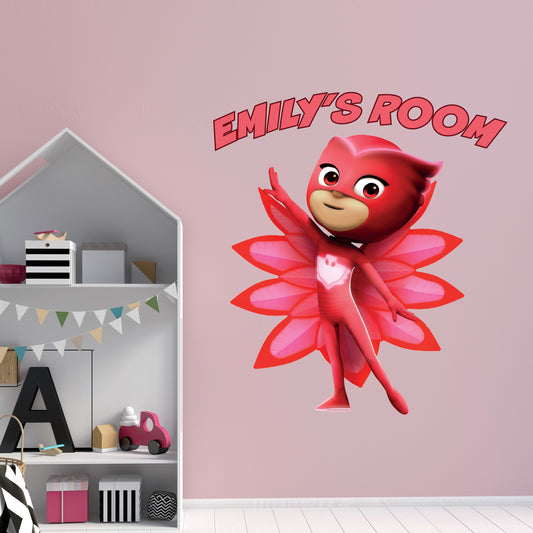 PJ Masks Power Heroes Wall Sticker - Owlette Pointing At Personalised Name Wall Art