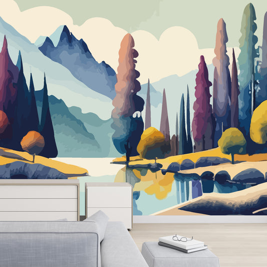 Dreamy Lakeside Full Wall Mural
