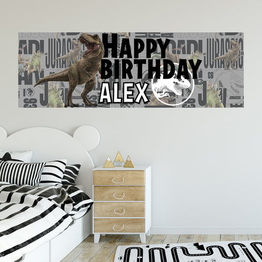 Jurassic Birthday - Training Grey Personalised Name Banner Wall Sticker