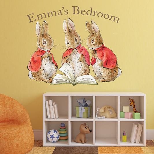 Peter Rabbit Wall Sticker - Peter Rabbit Flopsy Mopsy and Cottontail Reading Personalised Decal Wall Art