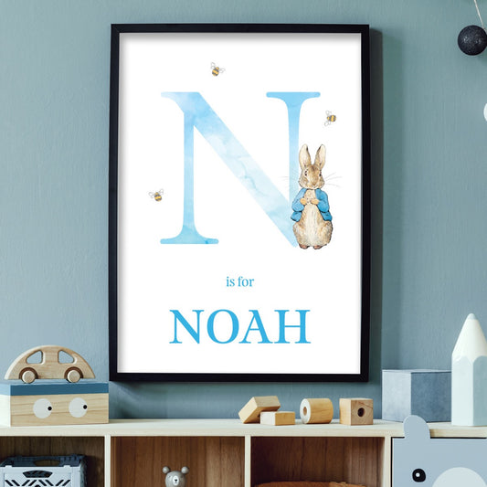 Peter Rabbit Print - Blue Letter and Personalised Name