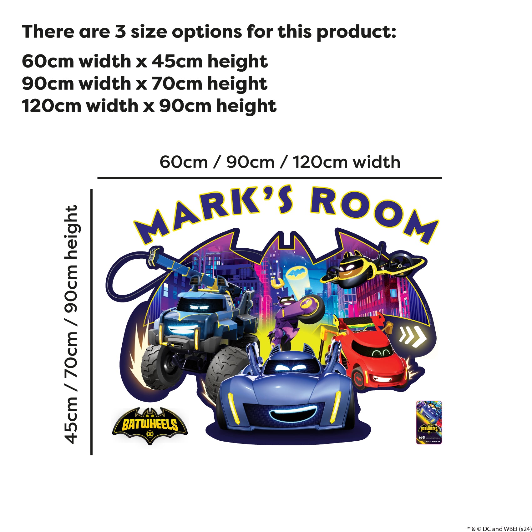 Contents: 1x Batwheels™ Group City Personalised Name Wall Sticker, plus fitting instructions.