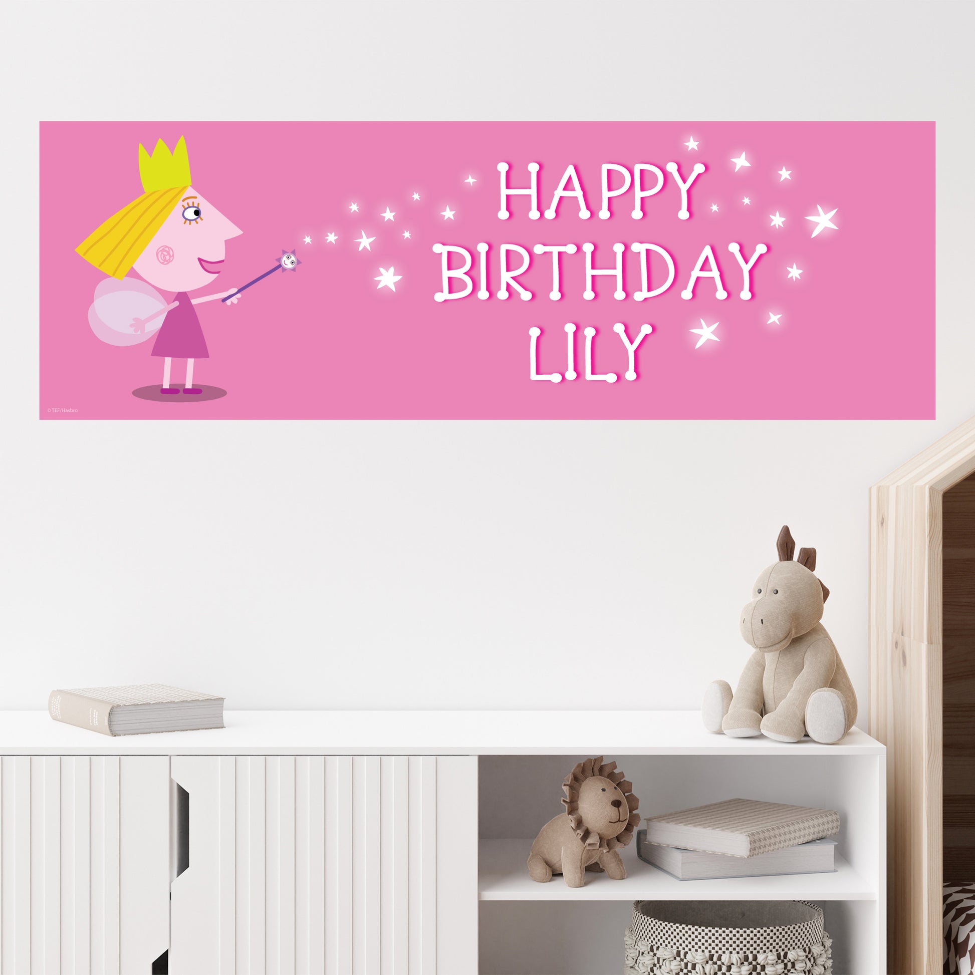 Ben And Holly Birthday - Holly Pink Personalised Banner Wall Sticker