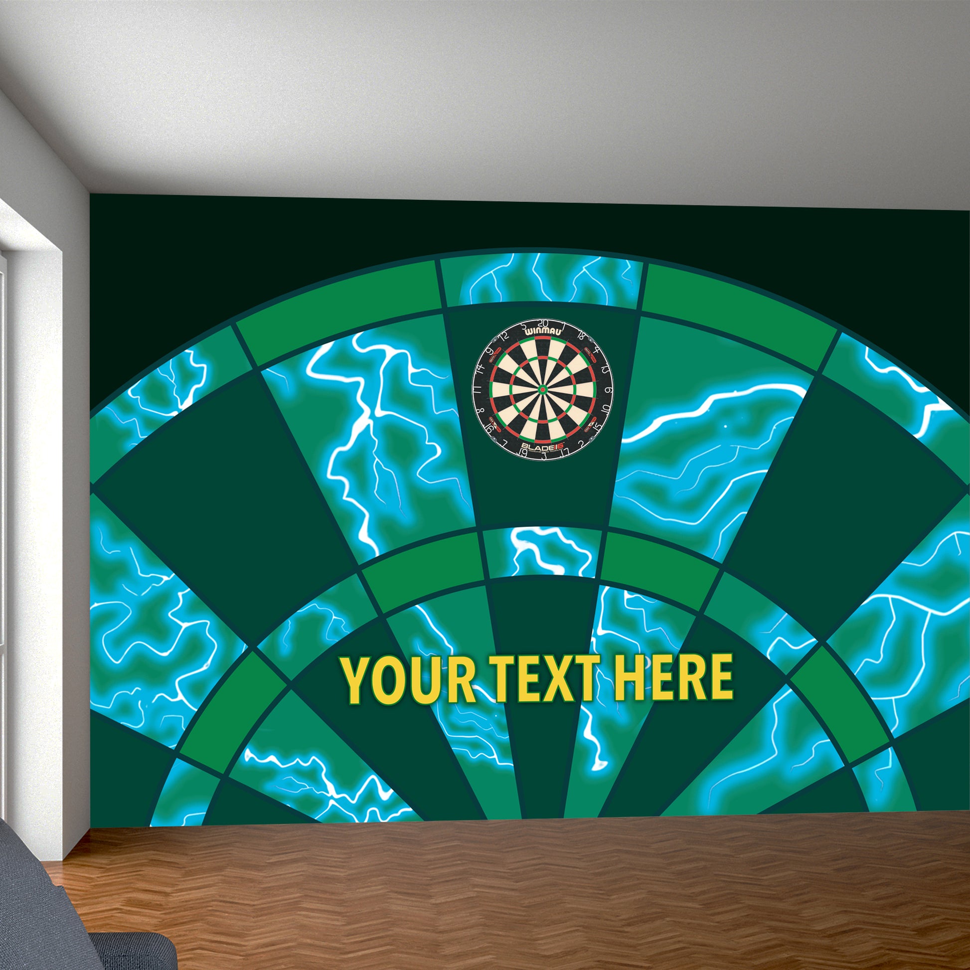 Contents: x1 Darts Green Lightning Full Wall Mural with Personalised Text (in your chosen custom size). If you would not like any custom text on your item, simply enter 'No Text' in the box.
