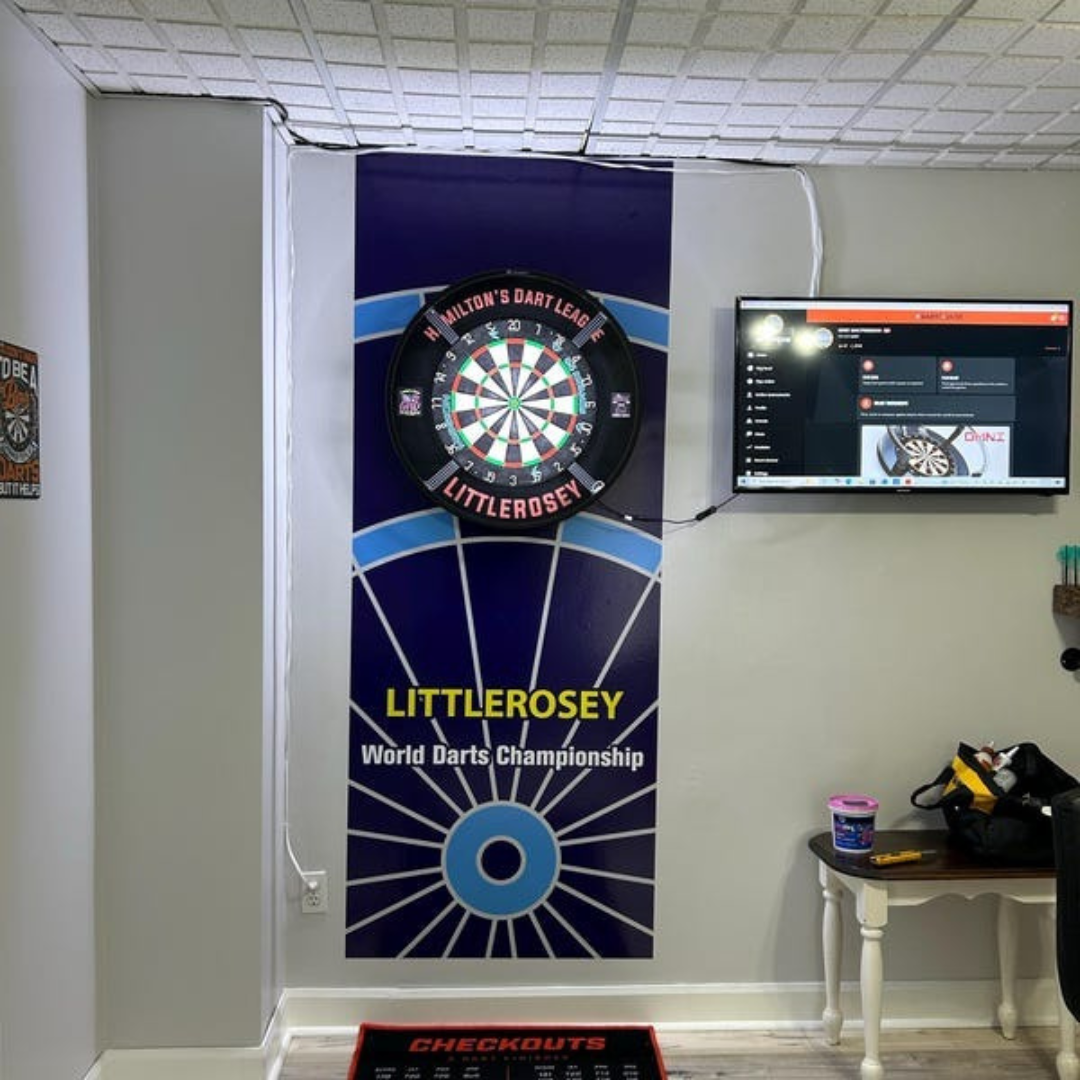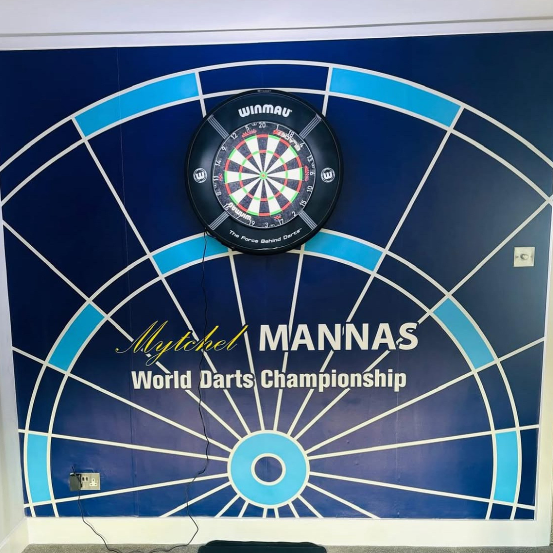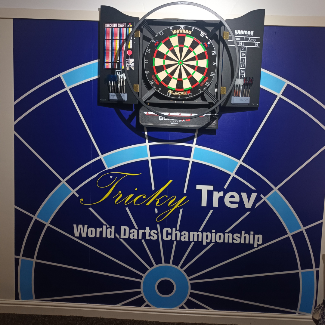 Darts Wall Sticker - Black Grey and Gold Board with Personalised Text Wall Art