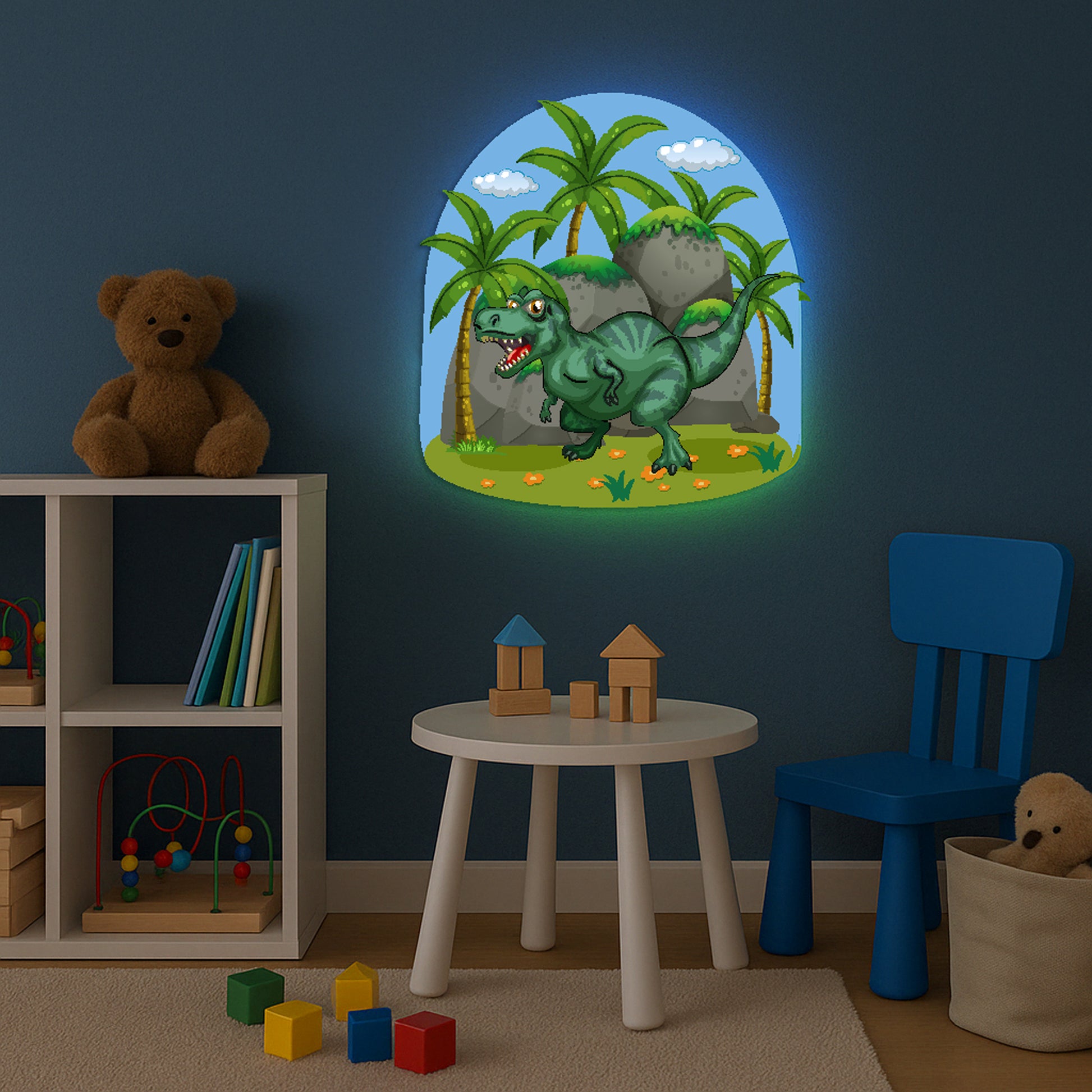 Please note: this product features a dinosaur-themed printed design. It is not a neon light, but is backlit with LED lights.