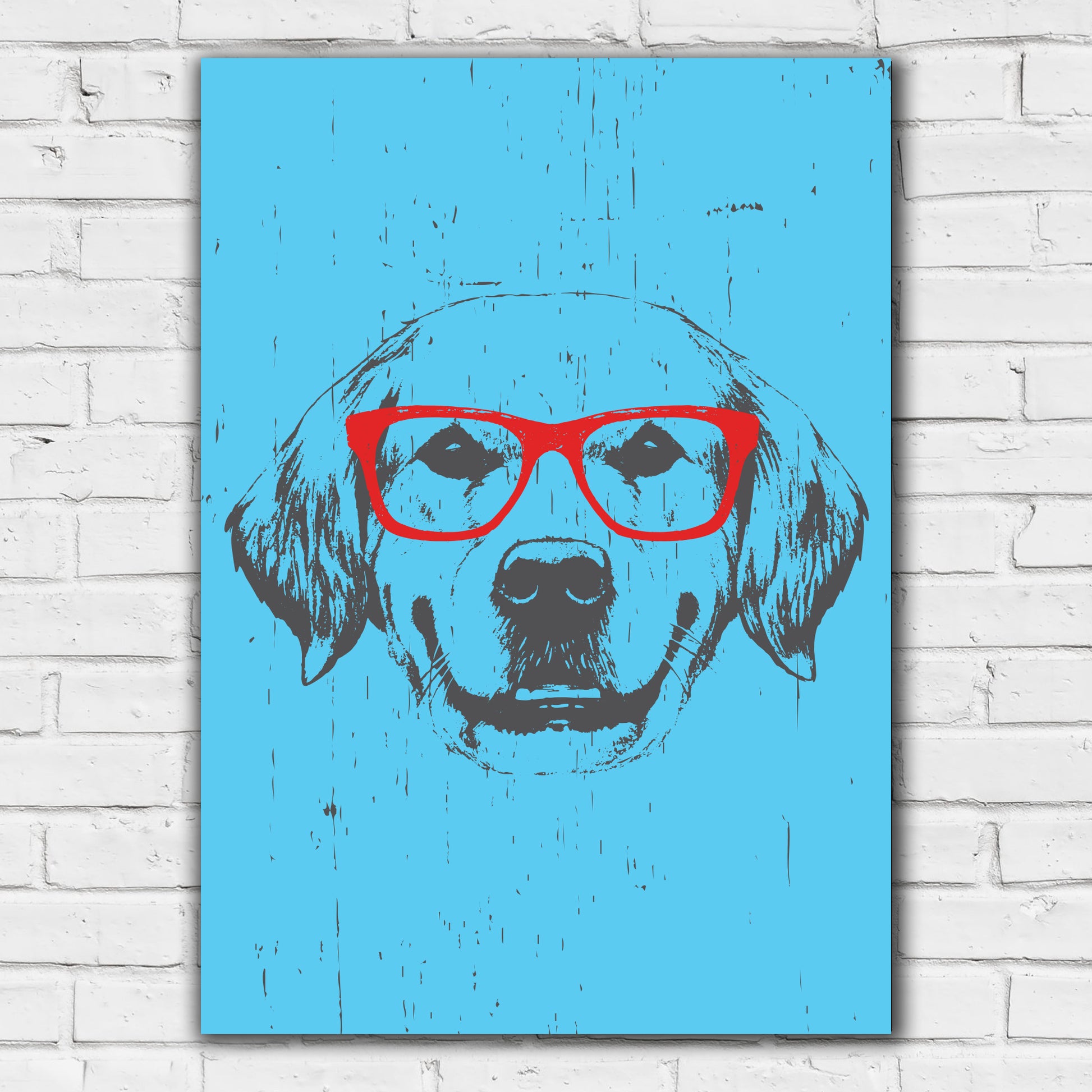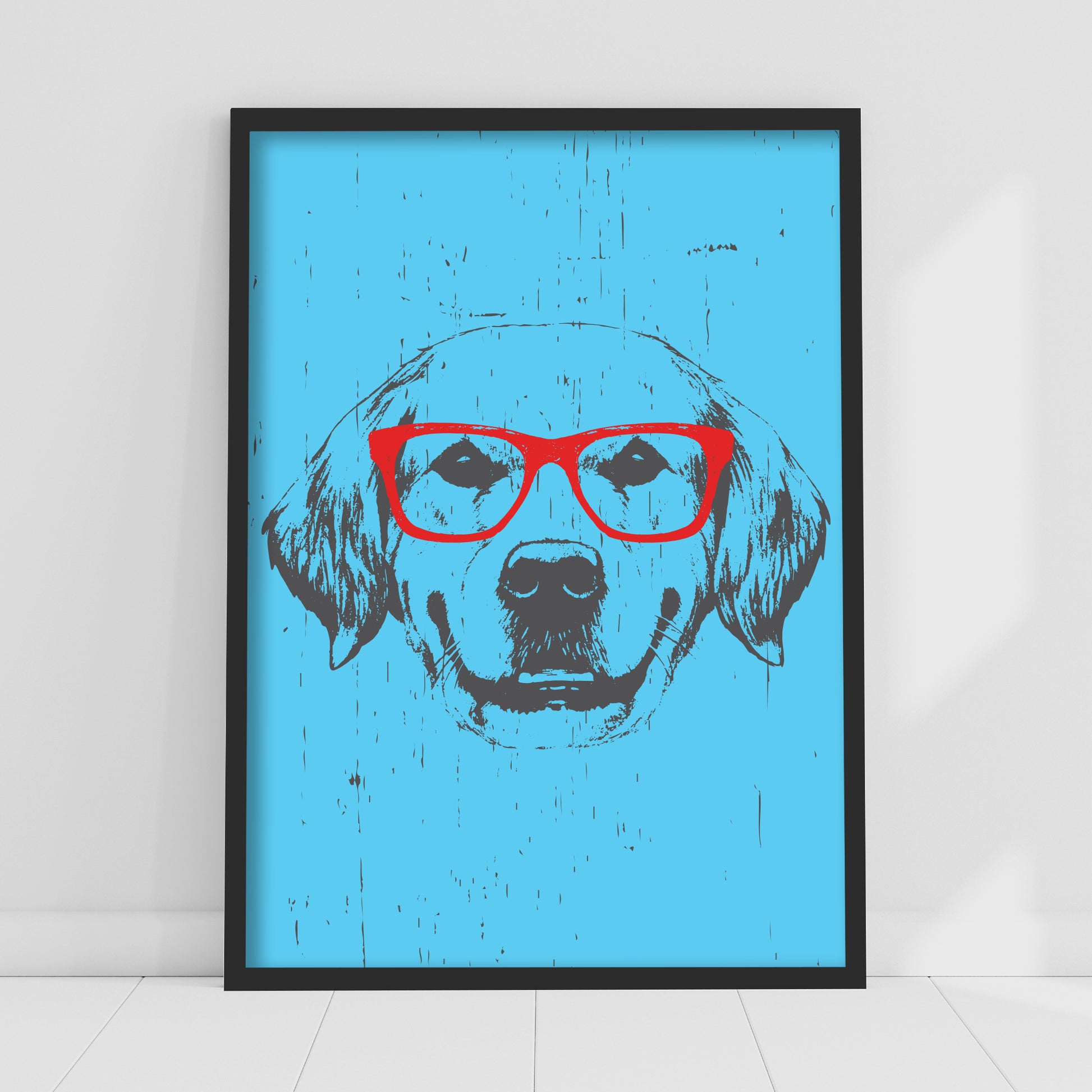 Contents: x1 Dog Wall Print - Dog with Red Glasses Poster Wall Art (in your chosen size and frame option).